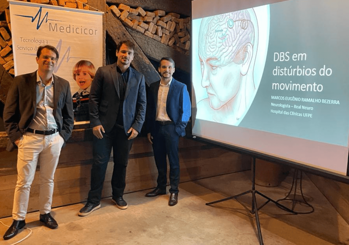 Durante o encontro, os neurocirurgiões Marcos Eugênio Bezerra, Arthur Lopes e Rafael Albanez, além da apresentação de casos clínicos, abordaram diversas particularidades sobre o estudo do movimento, as implicações do implante de DBS, como funciona o tratamento cirúrgico, além de mostrar como a cirurgia é realizada, principalmente a monitorização e as características do “halo de estereotaxia”.