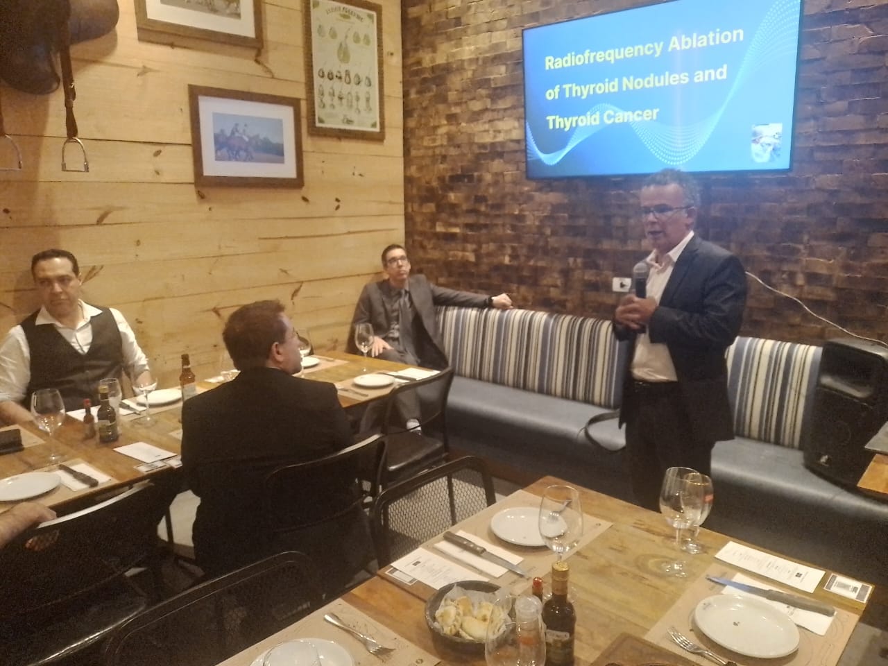 Entre os destaques da programação, esteve a palestra do Dr. Antônio Rahal — primeiro radiologista intervencionista a realizar a ablação de nódulos de tireoide por radiofrequência no Brasil. Em sua apresentação, o especialista compartilhou casos clínicos e ressaltou os diferenciais da técnica, que vem transformando a abordagem terapêutica dos nódulos benignos da tireoide.