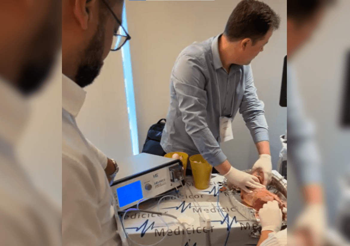 Durante a imersão, os participantes tiveram a oportunidade de conhecer e utilizar os equipamentos da Linha Terapias Ablativas, comercializada pela Medicicor, incluindo o gerador e as sondas.
