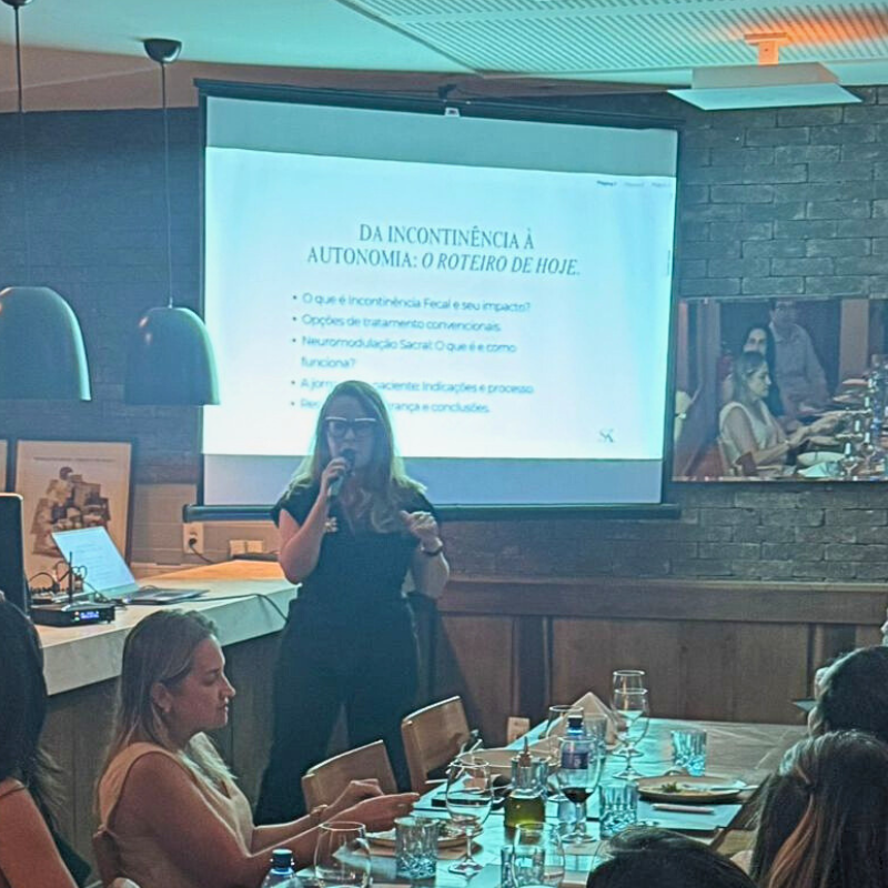 Durante o encontro, foram apresentados dados clínicos e resultados que demonstram a eficácia do método, que consiste na estimulação elétrica dos nervos sacrais para restaurar o controle esfincteriano e melhorar a qualidade de vida dos pacientes.