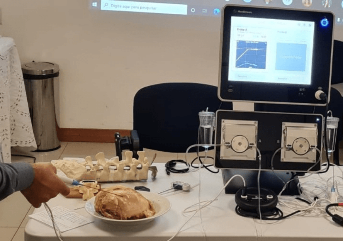 A apresentação foi realizada pelo especialista de produtos Carlos Rosado da Medtronic (SP), que abordou as funcionalidades do sistema, destinado também à coagulação e ablação do tecido ósseo durante procedimentos cirúrgicos, incluindo paliação de dor associada a lesões metastáticas envolvendo osso em pacientes que falharam ou não são candidatos à terapia padrão.