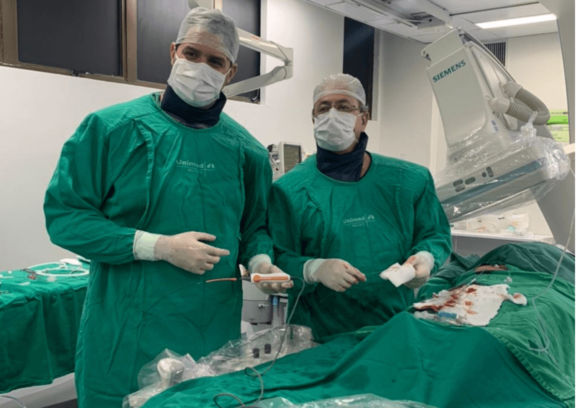 Foi realizada em Recife (PE), no dia 28 de junho, uma cirurgia de “Denervação Renal”. O procedimento inédito foi conduzido pelo cardiologista intervencionista e proctor da Medtronic, Carlos Eduardo Gordilho e realizado pelo também cardiologista intervencionista Vinicius Melo Filho, no Hospital Unimed III , sem intercorrências e com duração de uma hora. A paciente hipertensa refratária, de 78 anos, fazia uso de 5 classes de anti-hipertensivos, e apresentava pressão arterial pelo mapa 190 x 105.