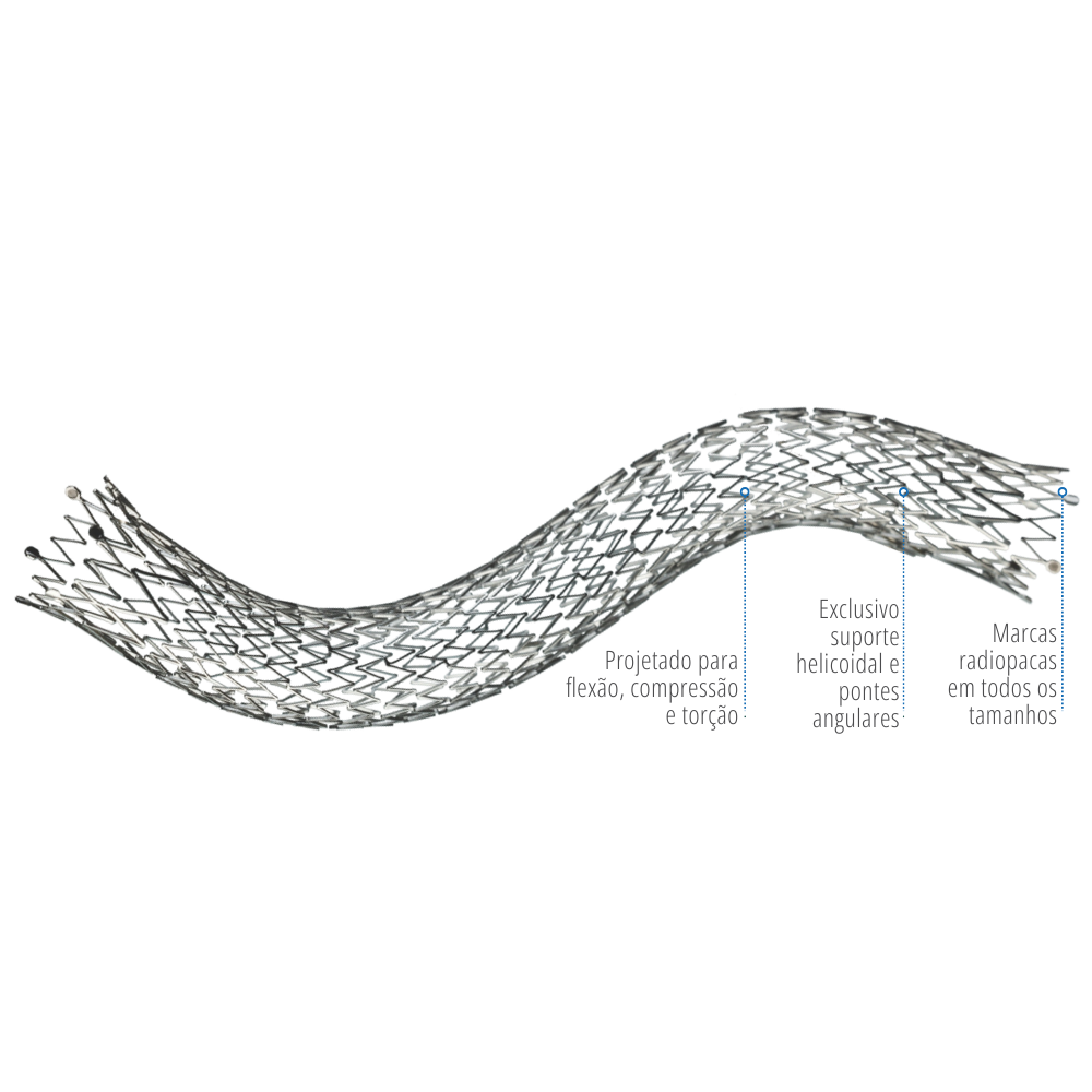 Indicado para Artéria Femoral Superficial (SFA) e Poplítea Total o Stent auto expansível, Lifestent, possui desenho helicoidal único para dobrar, comprimir e torcer, sendo o único stent aprovado pela FDA para o SFA e artéria poplítea completa.